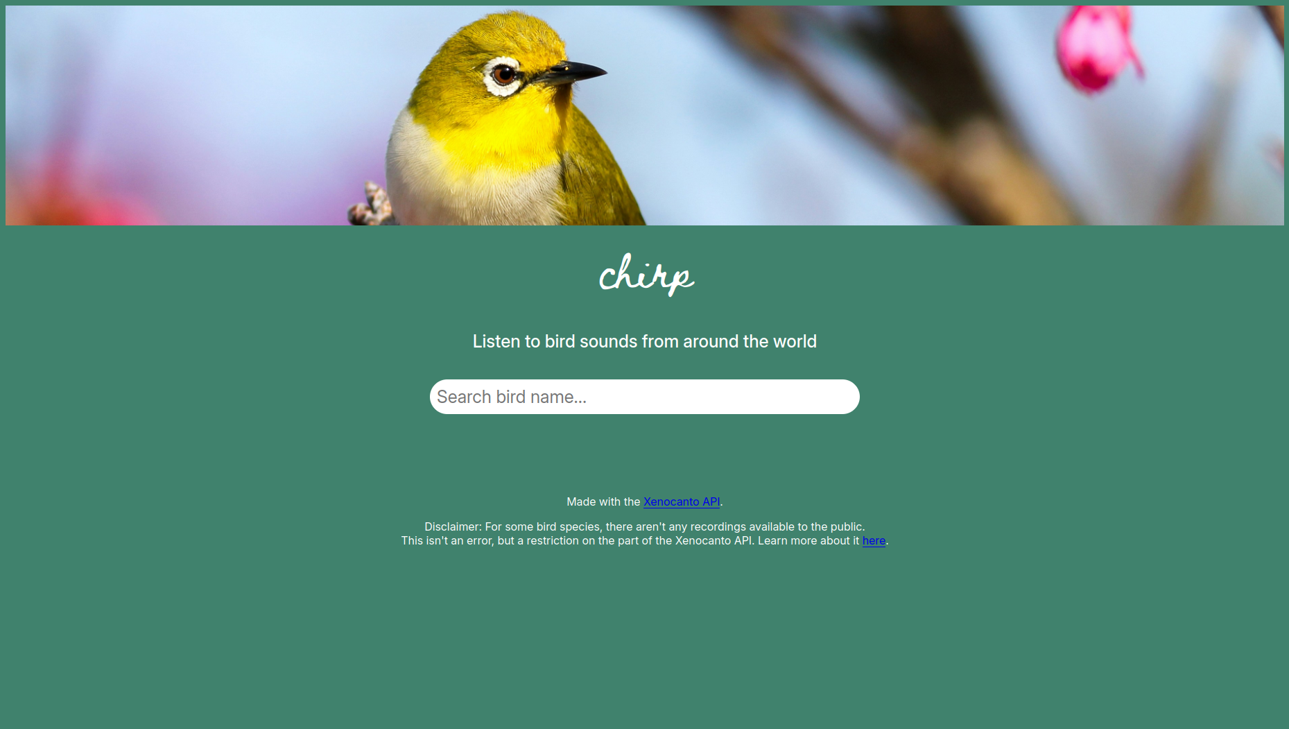 Aplicativo web educativo que busca e reproduz sons de pássaros de todo o mundo.