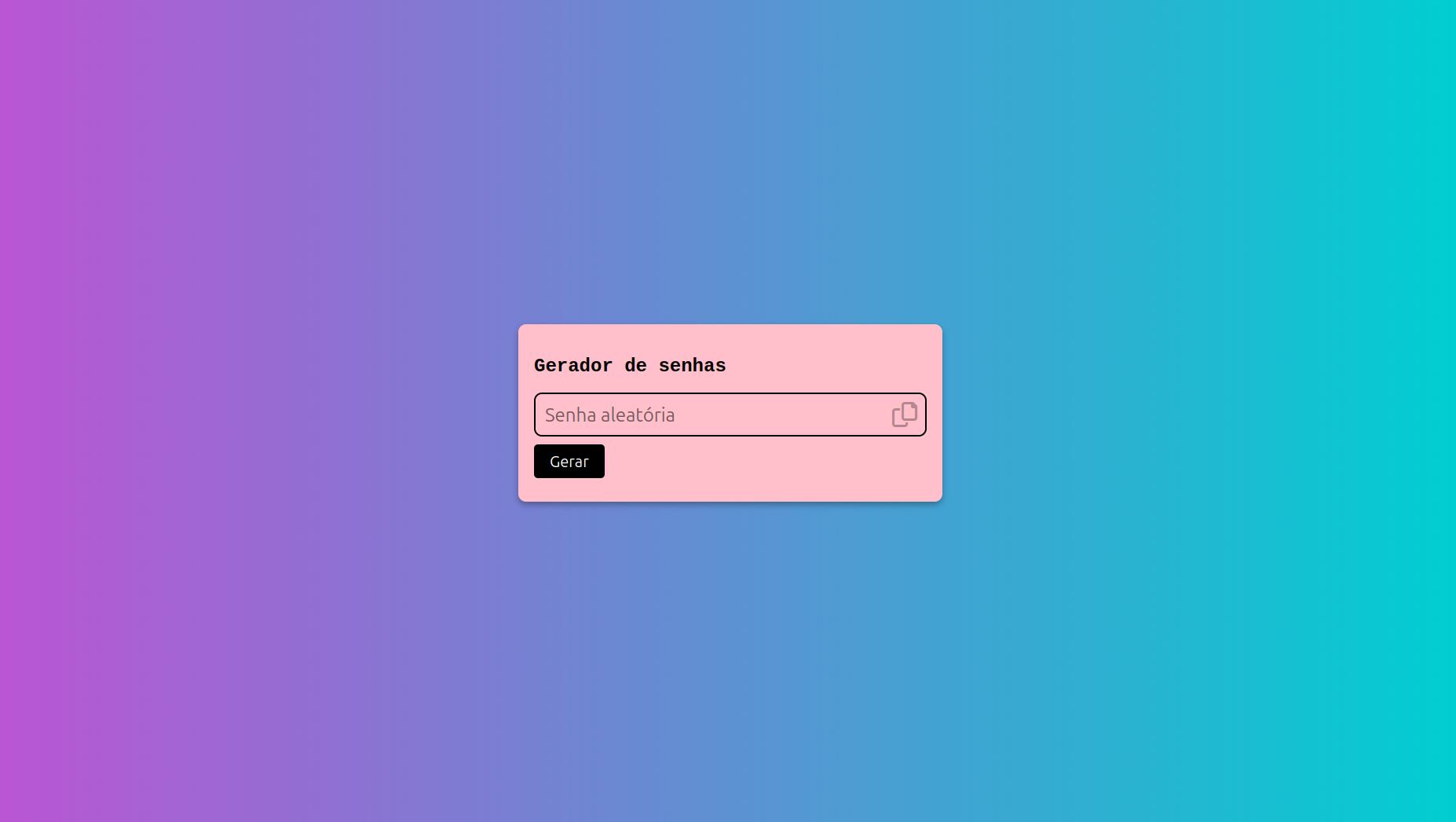 Gera senhas fortes com caracteres aleatórios que podem ser copiadas em um clique.