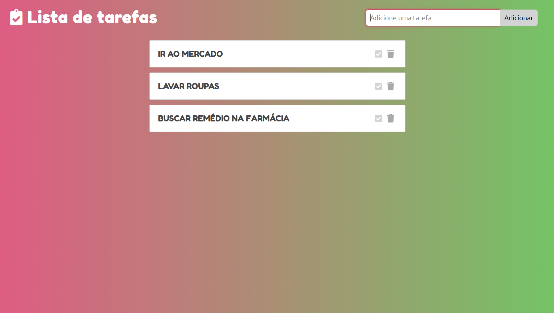 Lista de afazeres que permite adicionar tarefas, marcá-las como feitas, bem como deletá-las.